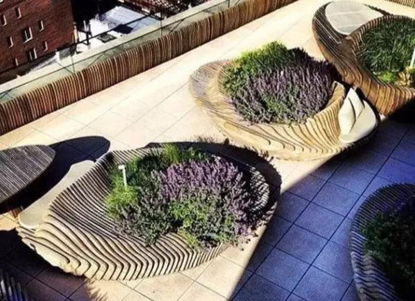 可以把空間圍合也能保護樹木一般作為種植池和坐凳相結合