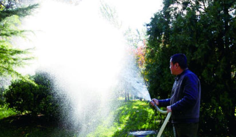 春季大樹澆水