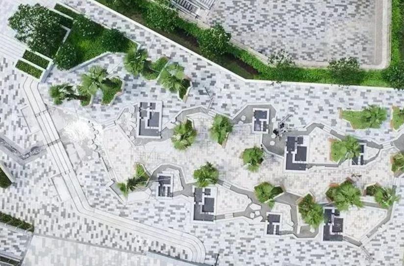 石材鋪地的拼接形式多種多樣,不同的組合方式可以暗示行進、停留及各種方向的指向,具有肌理與雕刻圖案的紋磚,有很好的浮雕效果,增強了視覺沖擊力。